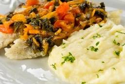 Prato congelado 300g: Valor Energético 401 Kcal, Carboidratos 32g, Proteínas 32g, Gorduras totais 16g. Não contém glúten; Contém lactose. Alérgicos: contém peixe e derivados do leite .